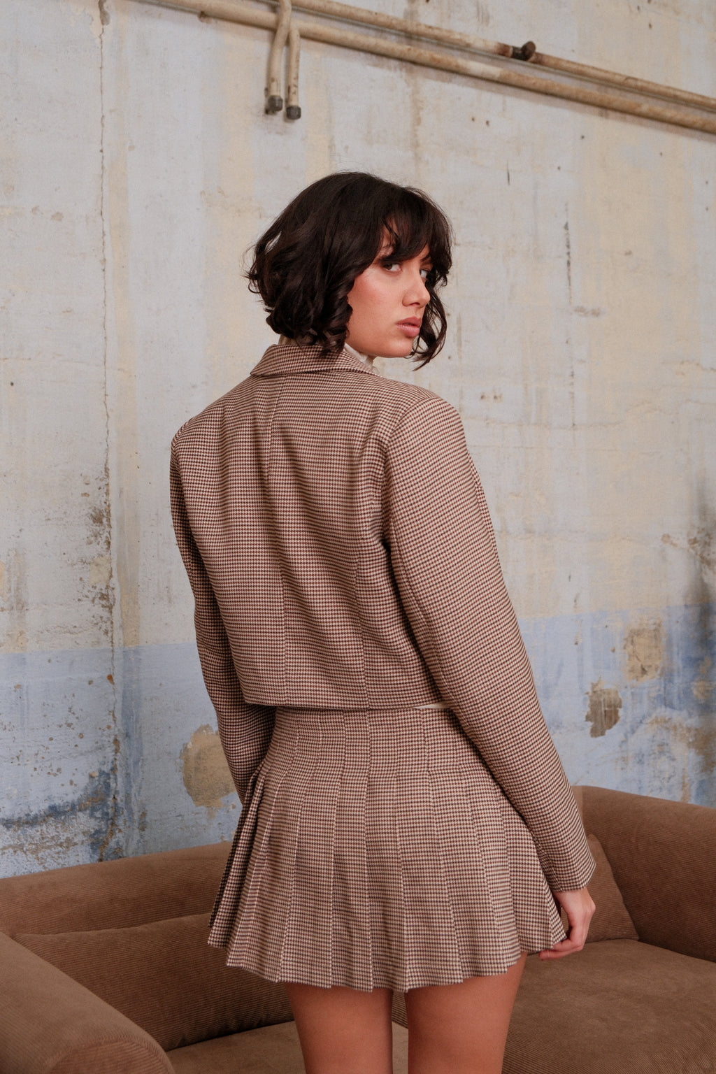 Pour un look preppy irrésistible : porte la veste Freya avec la jupe Noora assortie.